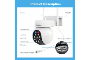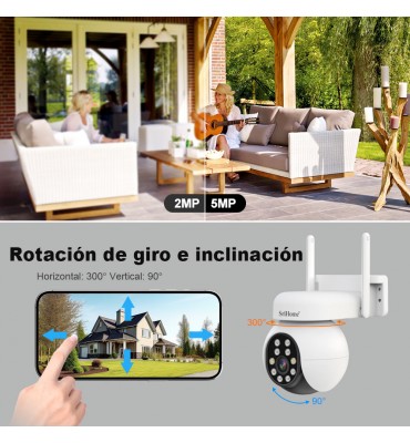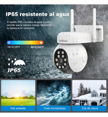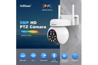 Camara de Segridad SRIHOME 5 Megapixeles WIFI, Audio bidireccional, grabación, Sirena, Detección de movimiento, Notificación y control desde celular.
