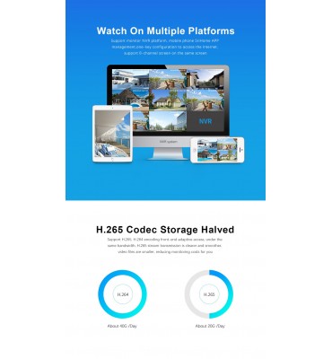 5. Soporte de formato de compresión H.265, que puede ahorrar 50% de espacio de almacenamiento