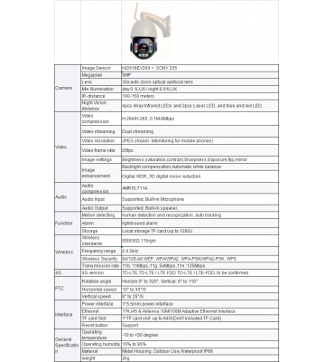CAMARA DOMO WIFI ALTAS PRESTACIONES ZOOM 30 X 5 Mp AUDIO, GRABACION IDEAL CAMPO!!!!