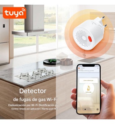 Este Detector de Gas Inteligente WiFi Tuya Smart es un sensor inalámbrico diseñado para proteger tu hogar o negocio detectando la presencia de gas natural. Te envía notificaciones a tu celular a través de la app Tuya Smart o Smart Life si detecta gas o si la batería está baja. Funciona con WiFi 2.4 GHz y se alimenta directamente a 85-250V CA. Instalá este detector de gas en tu cocina, cerca de tu calefón o de cualquier aparato que use gas natural. Conectalo a tu red WiFi y a la app Tuya Smart. Asegurate de configurar las notificaciones para recibir alertas inmediatas en tu celular si se detecta una fuga de gas. Esto te dará tranquilidad y te permitirá actuar rápidamente ante una situación de riesgo, estés en casa o no.