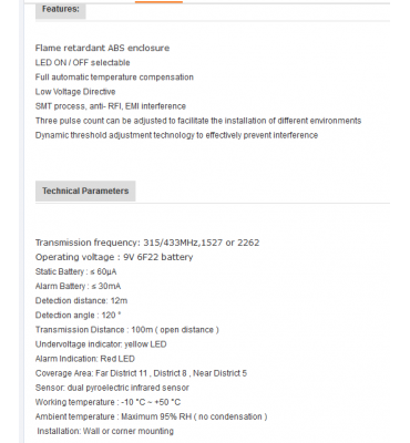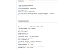 Sensor pir inalámbrico con antena, frecuencia 315/433 MHZ para sistema de alarmas.