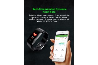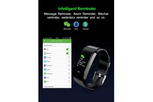 Maestro chip nRF52832Sensor de BST-BMA253Fotoeléctricos chip HRS3300DSLas vibraciones de baja potencia de motorImpermeable IP67Sistema Compatible Android 4,4 y superior, iOS 8,2 y superiorCaracterísticas Frecuencia Cardíaca continua, cuidado remotoCuidado para compartir datos en tiempo real en familiaCaracterísticas principales de la pantalla de corte automático de muñeca hardware usable + aplicación inteligente + servicio de nube de datos grandesLlévalo contigo, controla, muestra, graba y sincroniza los datos con la nube en tiempo real.Monitoriza los cambios de salud corporal, muestra el estado de riesgo y los resultados de la evaluaciónCaracterísticas principales Frecuencia Cardíaca continua, conteo de pasos, calorías, distancia, monitoreo del sueño, recordatorio de llamadas, recordatorio de alarma, pantalla brillante, compartir social (WeChat, QQ, Facebook, Twitter), etcAgitar para tomar fotosTamaño de la pantalla 0,96 "80*160 IPSTipo de pantalla TFT IPSParámetros de conexión Bluetooth 4.0BLE (bajo consumo de energía)Otros parámetros batería litio polímero bateríaCapacidad de la batería 85 mAhMétodo de carga de Clip de cargaTiempo de carga aproximadamente 2 HTiempo de vida 5 días, 10 días de esperaDe almacenamiento de datos de 3 mesesMétodo de Control control táctil, control de aplicaciones móvilesIdioma del producto 12 idiomas incluyendo chino/InglésMaterial de apariencia funda frontal: PC funda trasera: ABS + PC Correa: TPUColor del producto negro, azul, púrpura